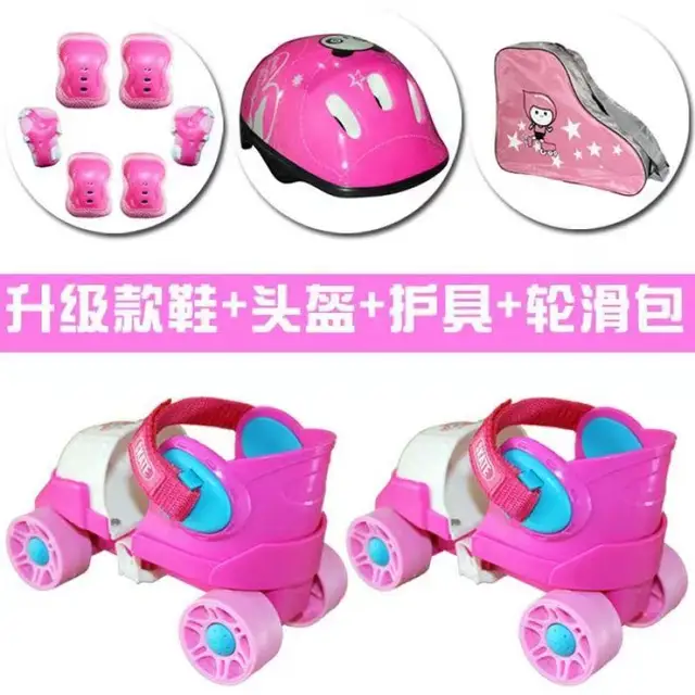 어린이용 롤러스케이트 보호세트를 소개합니다. 아이들이 안전하게 롤러스케이트를 즐길 수 있도록 제작된 세트입니다. 4개의 바퀴가 달린 이중끈으로 조절 가능하며, 유아부터 남아, 여아까지 누구나 사용할 수 있습니다. 16~22cm까지 다양한 사이즈로 조절이 가능합니다.